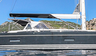 The Furlerboom is made of fiberglass with carbon fiber as the outermost layer. It’s appears elegant as a clear coat varnish carbon boom.